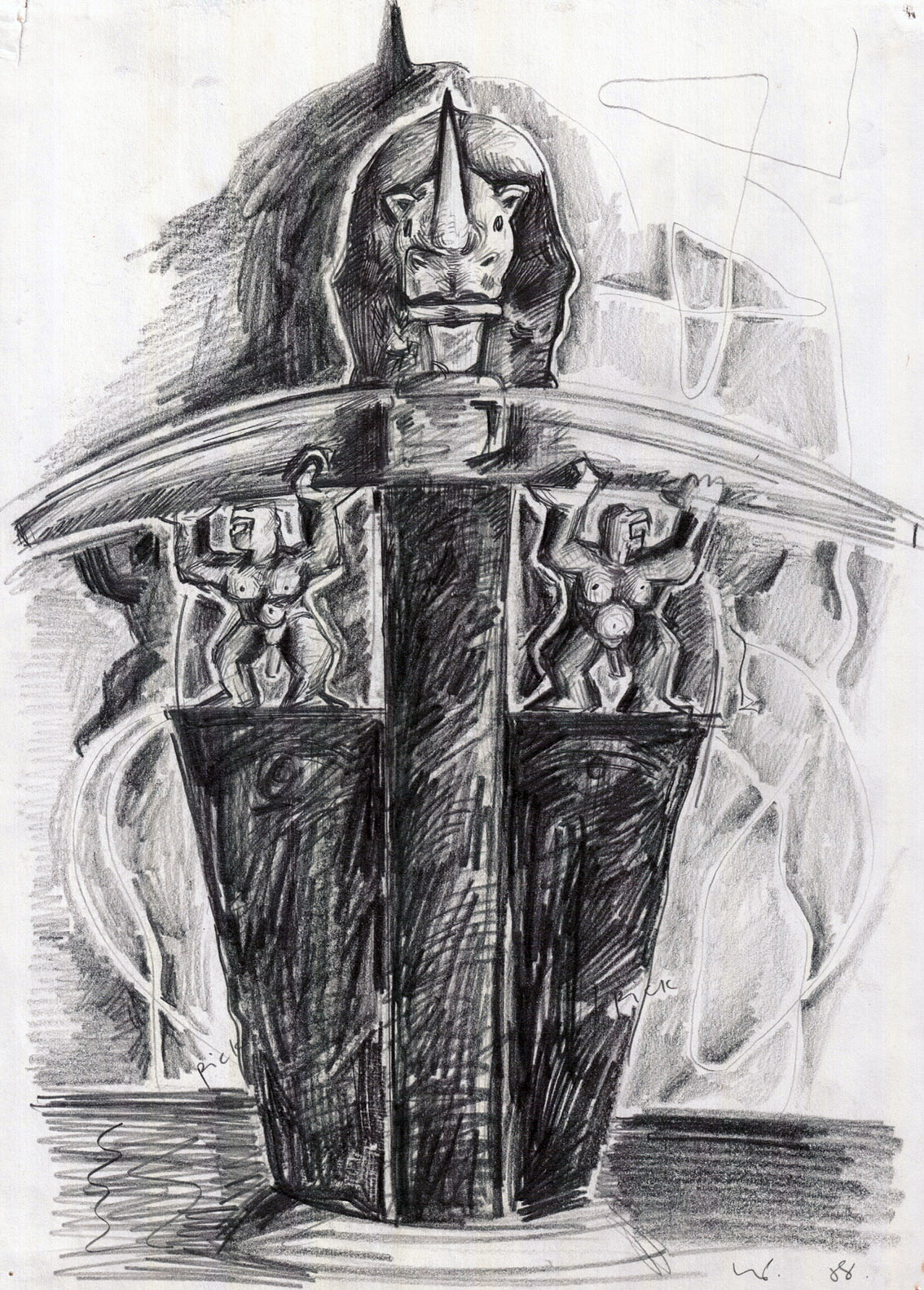 Preliminary drawing for Mafikeng Heads, 1987 - 1988.Link to preliminary drawings for the sculptures: Drawings_for_Mafikeng_Heads.pdf