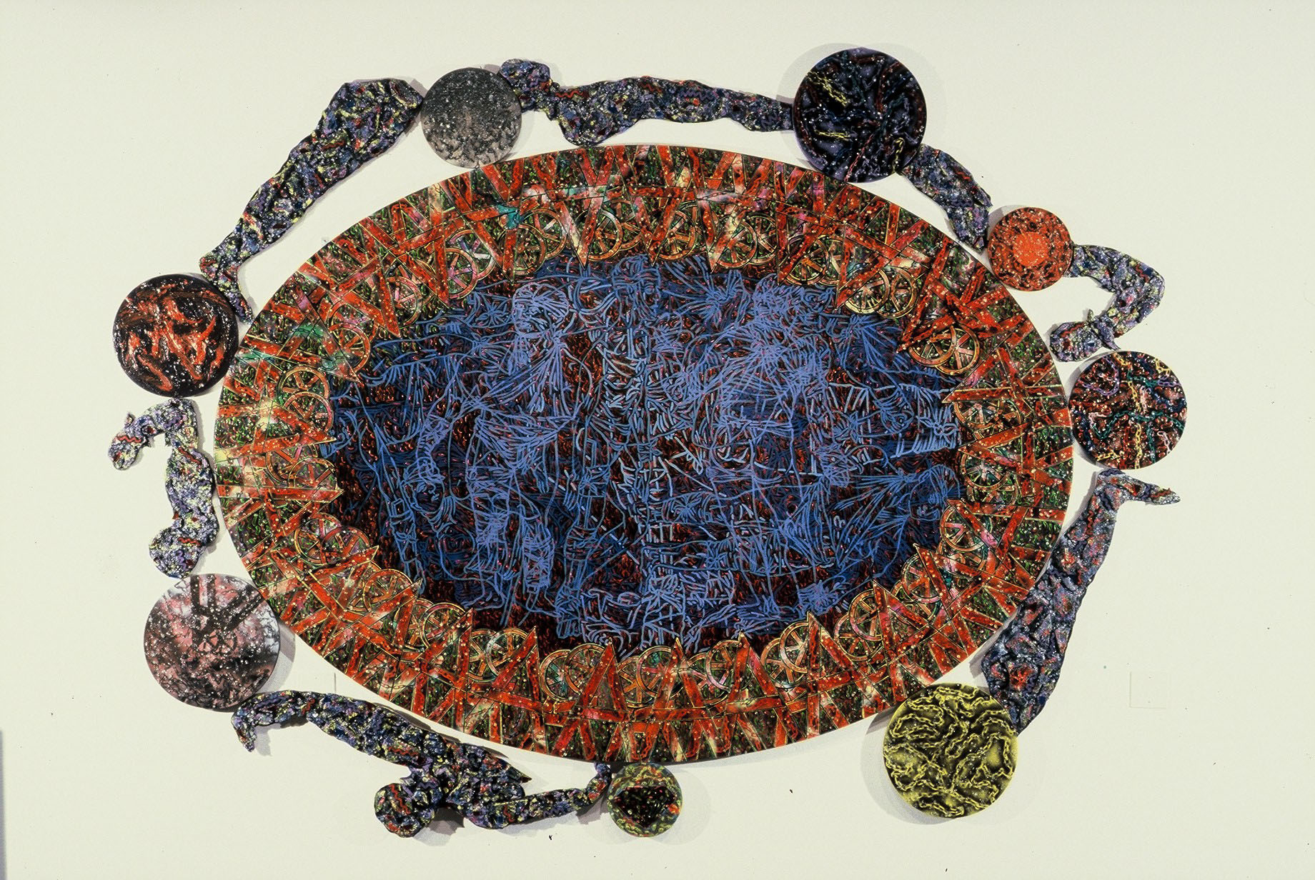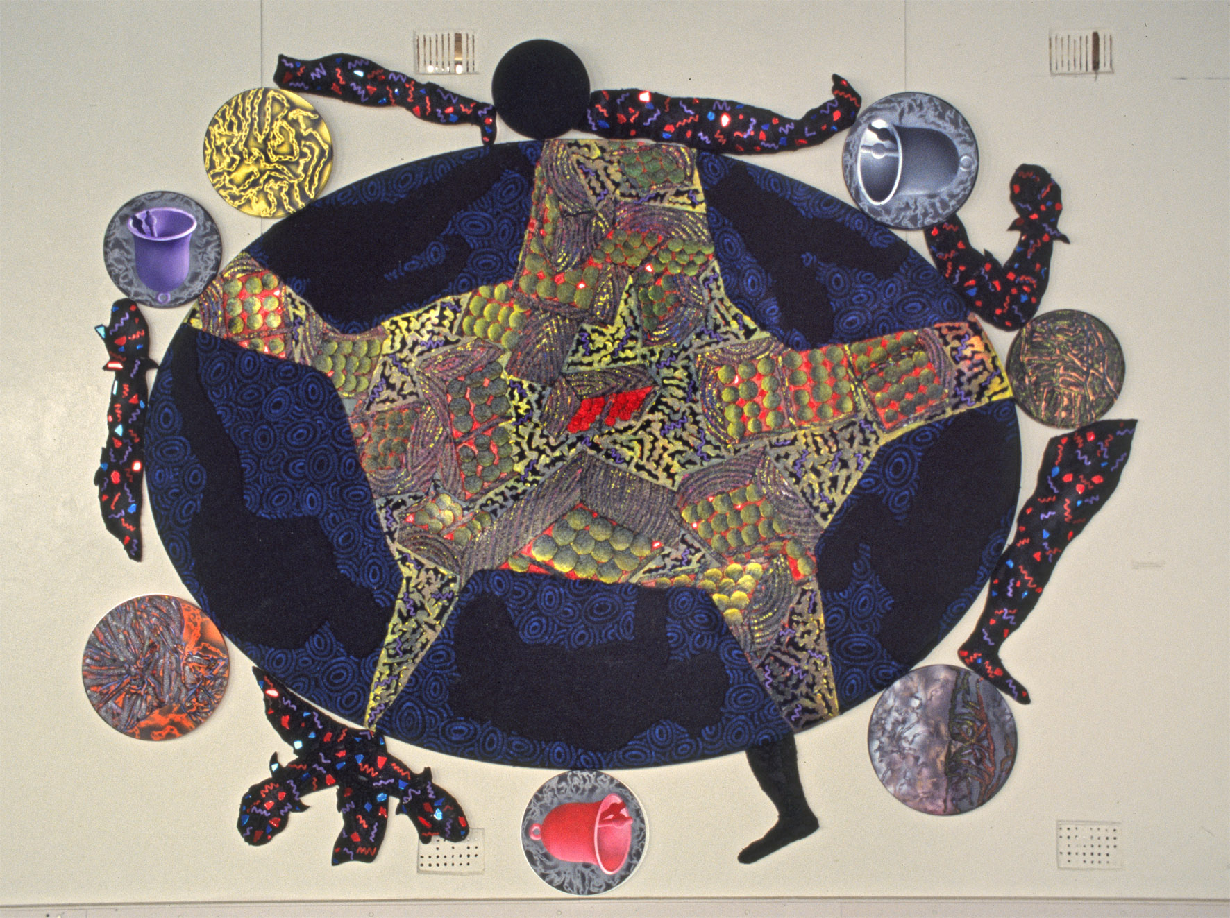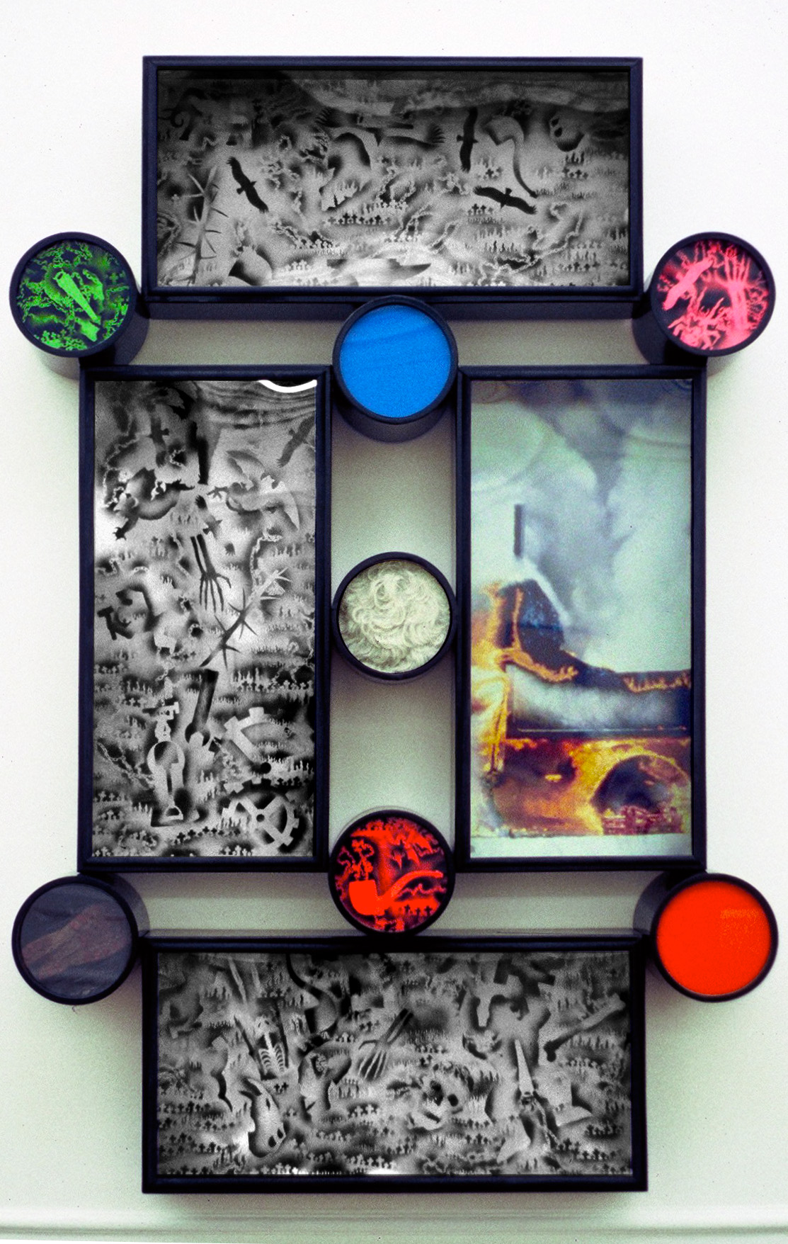 Sanoid assist 1. 1989. Acrylic, glass and broken mirror on canvas. 2010 mm x 1650 mm.