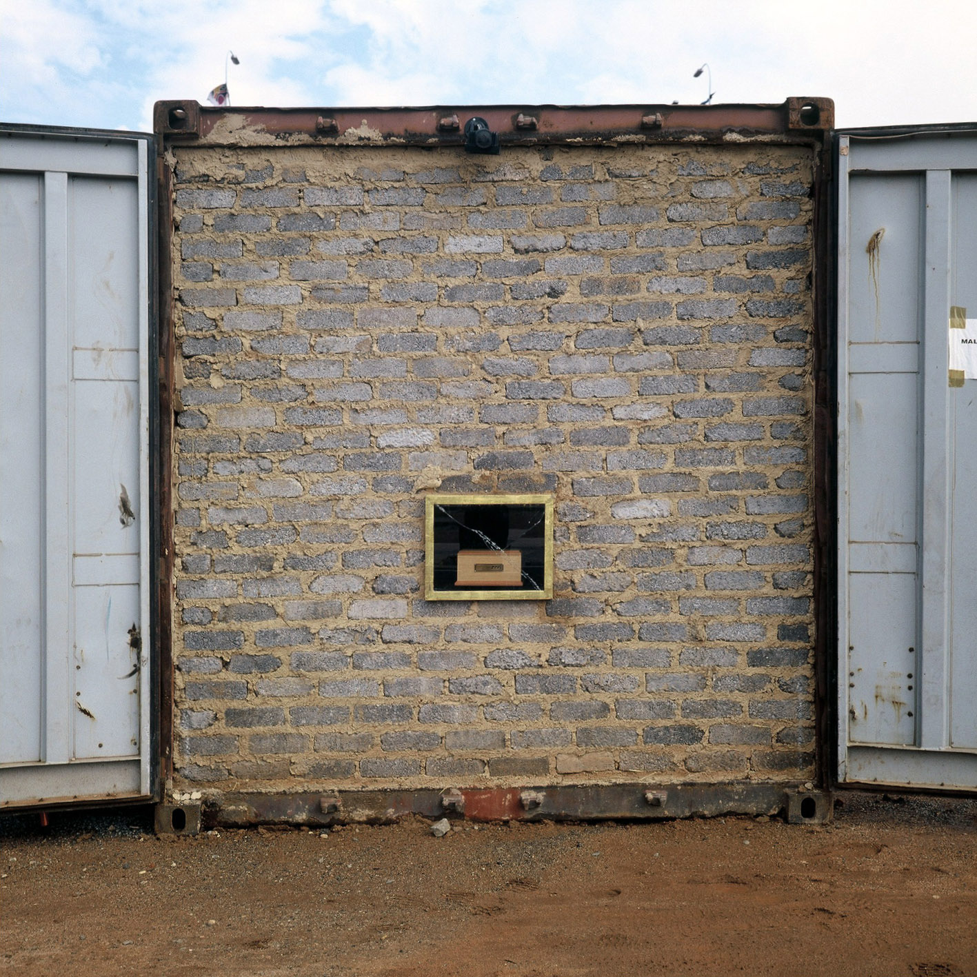 Precursor to Venice Biennale, 1995: The Lager. 1994.Wayne Barker curates an exhibition for the 1st Johannesburg Biennale, entitled: The Lager. He arranges a series of shipping containers in a lager format. A number of artists are invited to install their work, each in a container. Payne decided to brick up the front of his so as to prevent entry. Within the brick facade a funerary urn (reliquary) was interred. It is labeled with a date of death "1995" but no date of birth that suggests the end of an era. The work is entitled: Mistaken identity. The source for this work and the later walls for Venice stem from visits to the Bo-Kaap area of Cape Town where many derelict houses have door way and window openings bricked up to prevent occupation.