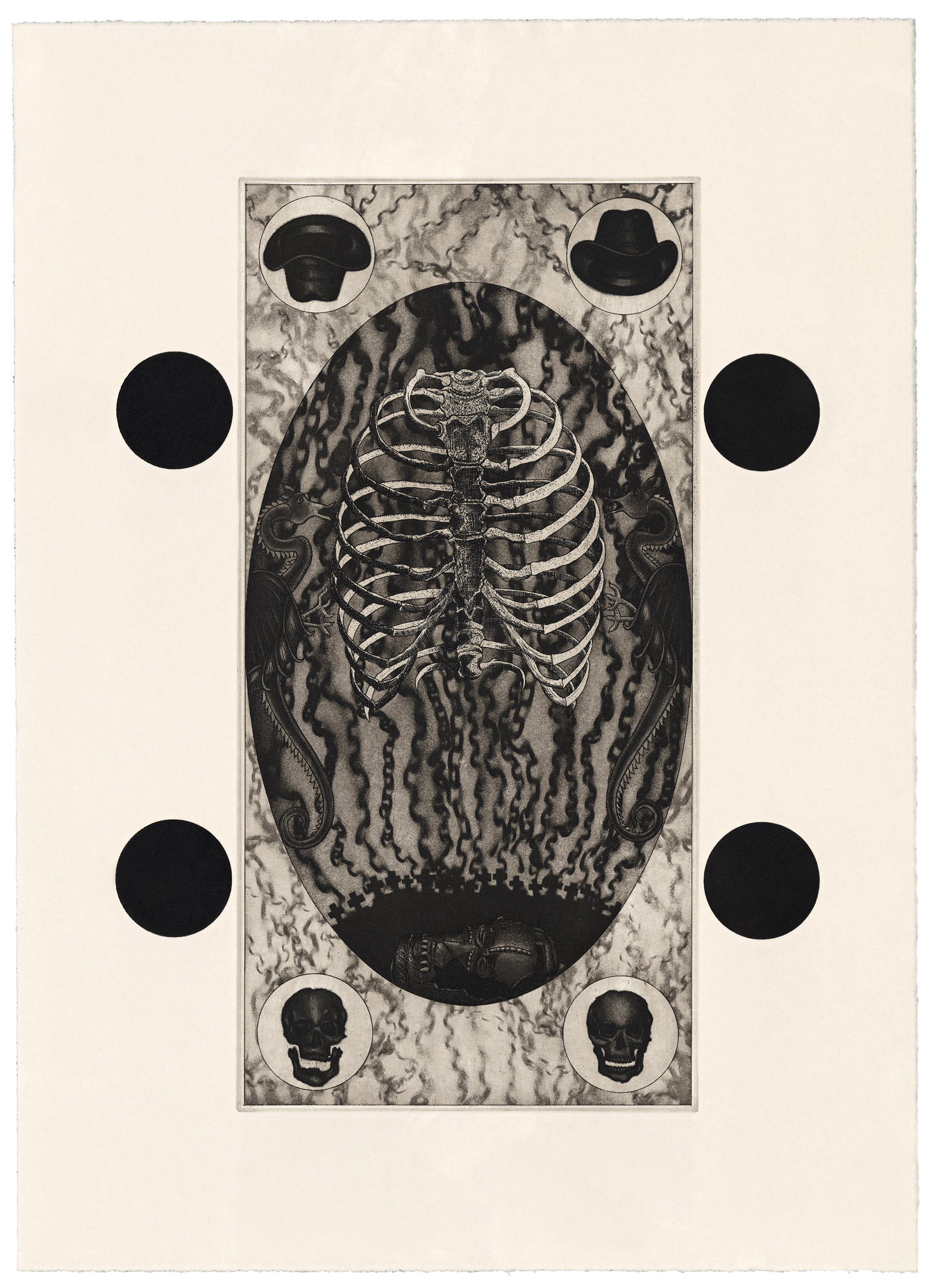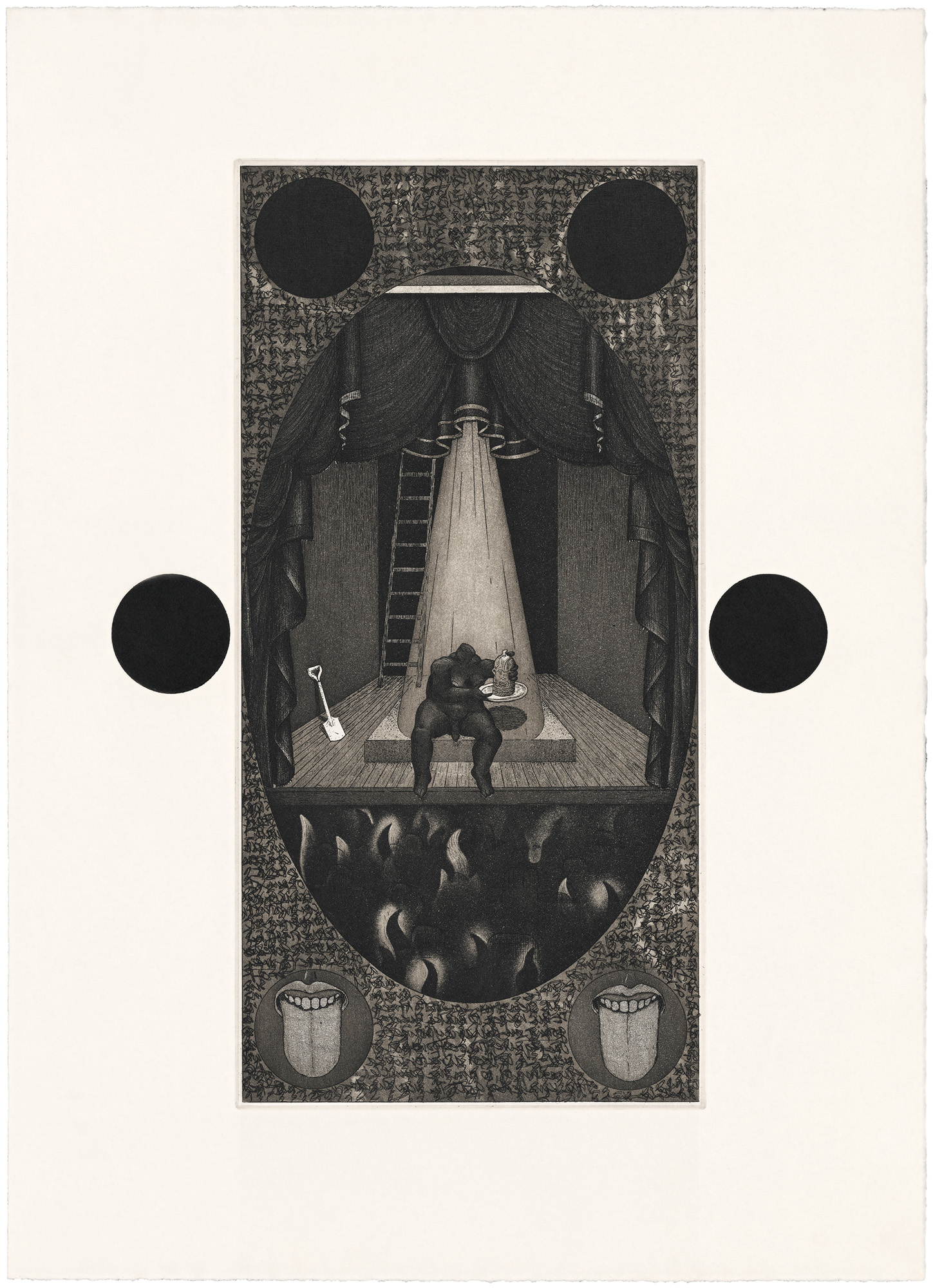 The Ventriloquist. 1993. Copperplate etching, 200 mm x 400 mm.