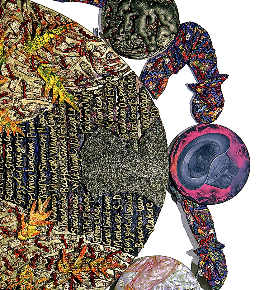 After co-founding the Axeage Private Press with Pippa Skotnes, Payne re-visited his Mafikeng Head project. Therein lay rich material for developing an intervention in museum display and a collaborative artists book.The Lydenburg Heads were displayed in the South African Museum in a liminal space, on a landing between two floors in glassed wall niches as archaeological specimens, not as artworks.Payne negotiated the re-positioning of the heads to accompany his Mafikeng Heads in an installation in the South African Museum in 1993.